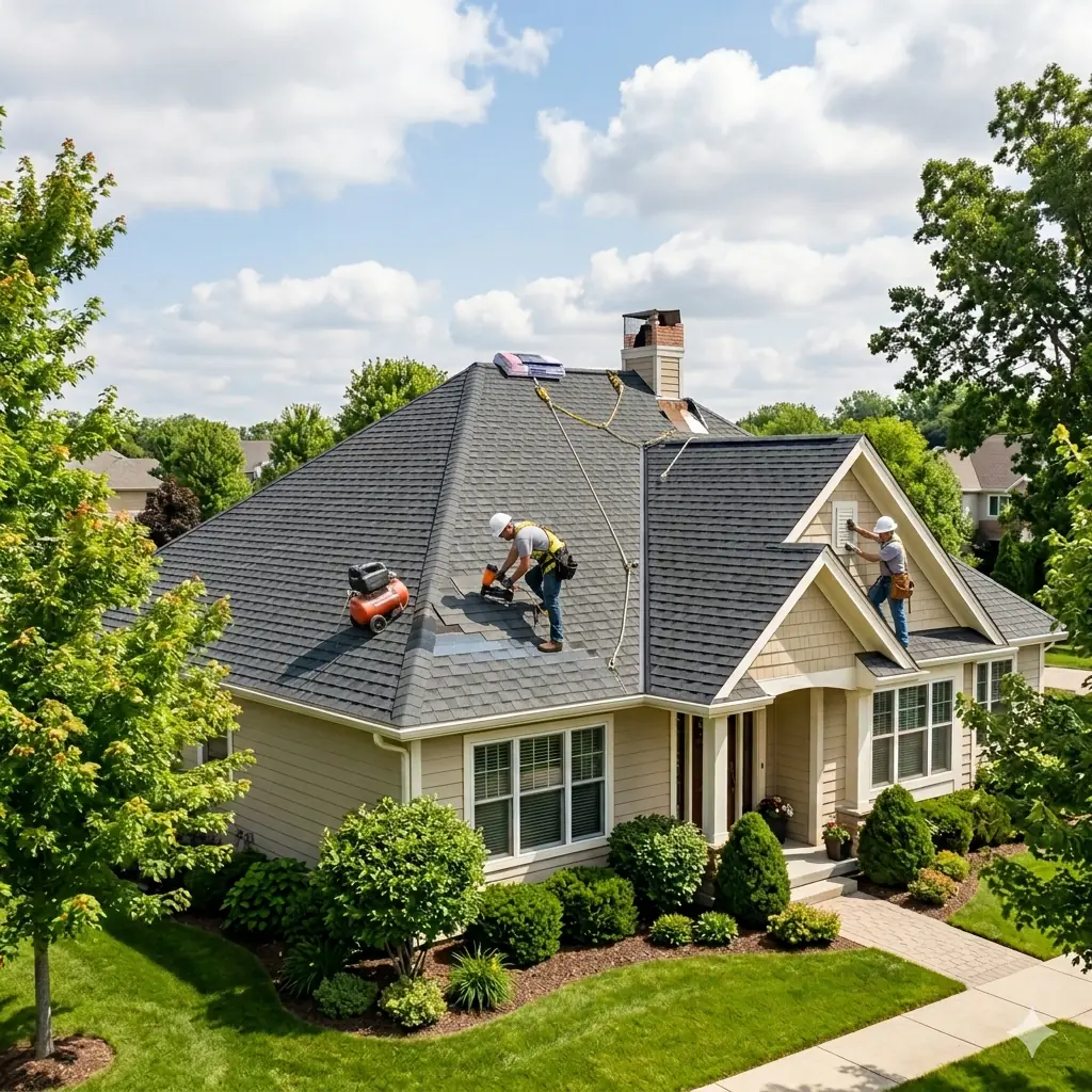 Professional services include roof inspections, repairs, full roof replacement and installation, shingle and metal roofing, storm and hail damage restoration, gutter and flashing work, attic ventilation upgrades, and roof maintenance plans